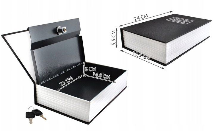 To praktyczny rozmiar, który pozwala schować gotówkę, dokumenty, biżuterię, klucze czy inne drobiazgi, a jednocześnie nadal wygląda jak zwykła książka na półce.